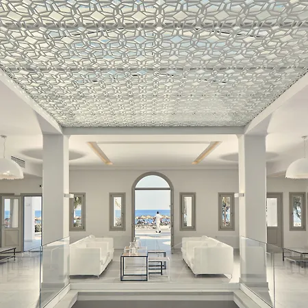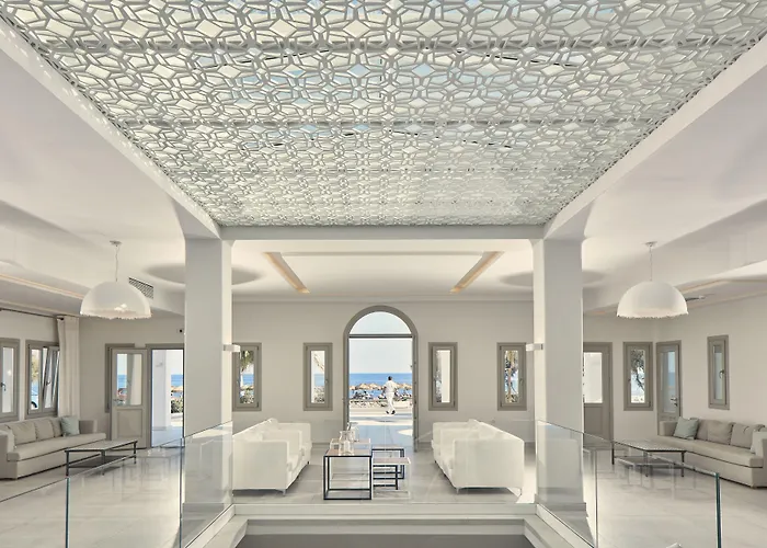 The exclusive Aqua Blue Beach Hotel Perissa is approximately 5 minutes' walk from Waterpark Santorini and has 2 outdoor swimming pools plus a fitness club. The 5-star luxury hotel proudly offers a banquet hall, while Perissa Black Sand Beach is merely 400 metres away.